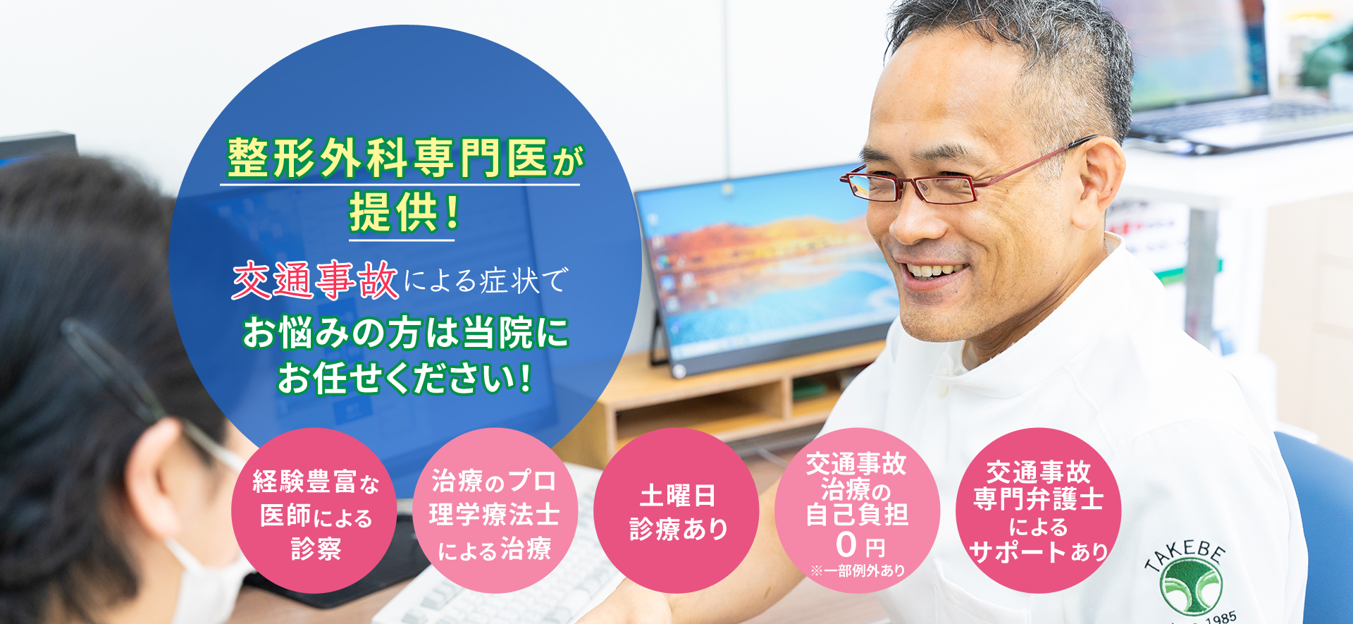 当院では、総合病院の整形外科や救急科で交通事故治療の経験を積んできた専門医が、医学的な根拠に基づいた診察を行っています。